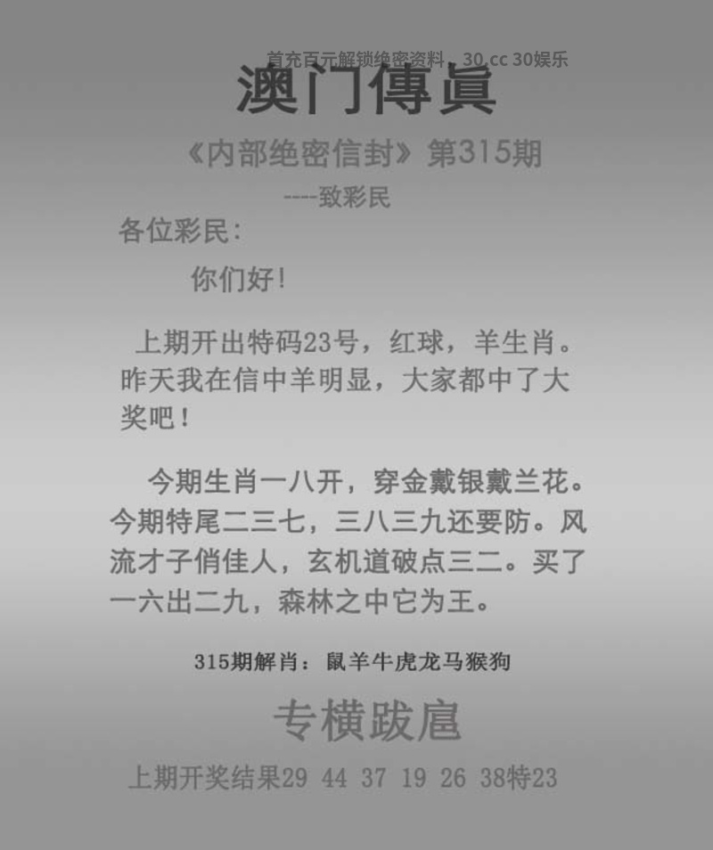319期【马会传真】开發00准 今期生肖三十开,二门得九财源进 奸臣献计斩忠良,匿玉玺孫堅背約 出三人四迎二一,人生识字忧患始 羊马猪虎猴有特,一一相连当为贵 解:今期奸臣献计斩忠良,解凶丑生肖鼠牛虎猴狗猪,一一相连当为贵,解单肖兔牛猪鸡羊蛇 综合:虎猪蛇龙鸡鼠狗猴兔 主特:16.19.25.02.21.30.44.22.39 |